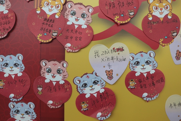 17日当天,航站区中心联合FM93浙江交通之声,在T1航站楼出发大厅搭建以中国地图为背景的喷绘墙,来往旅客用丝线牵引出对家的思念,用便利贴写下新年愿望,共同完成这面“思念墙”。