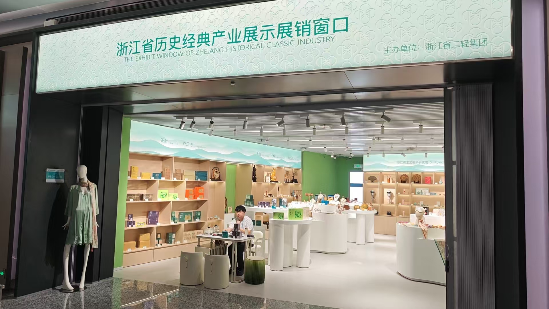 THE EXHIBIT WINDOW OF ZHEJIANG HISTORICAL CLASSIC INDUSTRYOpening hours 8:00-21:40Location 80 meters west after the Immigration Inspection (Restricted Area), T4 International departureContact Number 13284664455