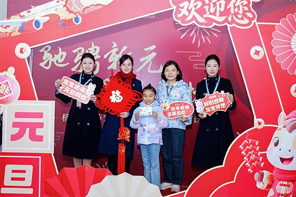 1月1日,杭州机场T3航站楼13号门内暖意涌动,航站区中心联合长龙航空推出“驰骋新元,杭行无忧”元旦主题活动,三大互动环节同步开展,为抵离旅客送上新年第一份美好。