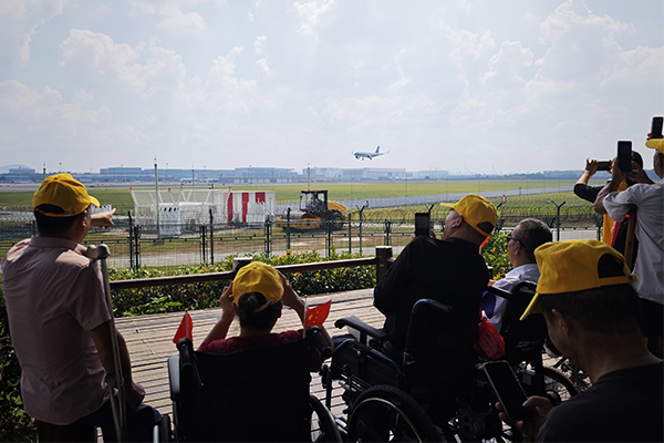 9月26日,在杭州机场公司党群部、团委组织下,余杭区30余名残疾人走进杭州机场。在飞行区、航站区团委志愿者的全程陪伴下,大家第一次体验乘机流程,感受飞机起降的震撼,圆梦心中向往已久的“飞行梦”。